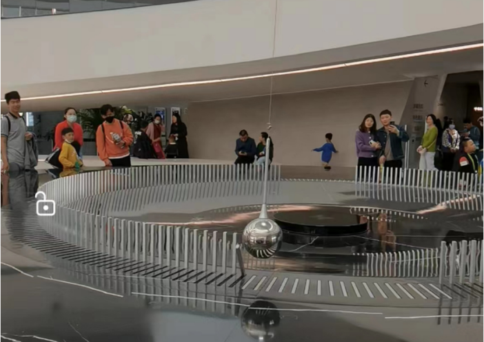 大家先后参观了“傅科摆”“宇宙剧场”“星空穹顶”等多个展区。“傅科摆”以法国科学家傅科命名,通过单摆运动方向的偏离,有力证明了地球在自转。“宇宙剧场”展区通过最先进的3D影像技术展示了宇宙的起源、演化和未来发展。在“星空穹顶”中,大家亲身触摸天体模型,了解各类行星、恒星等的形态、特征和运动规律。最后,支部党员们在“星际穹顶”展区通过实地观察望远镜,近距离了解了天体的形态、运动和排列等信息。